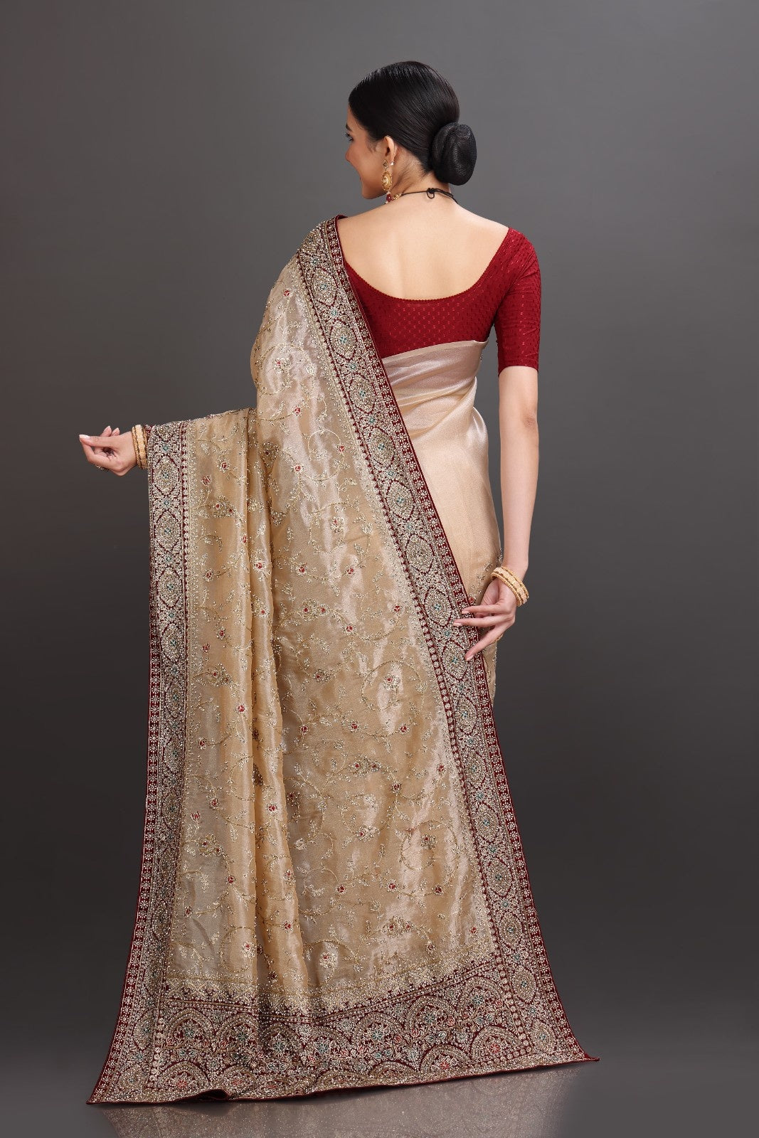Maroon Soft Tissue Saree